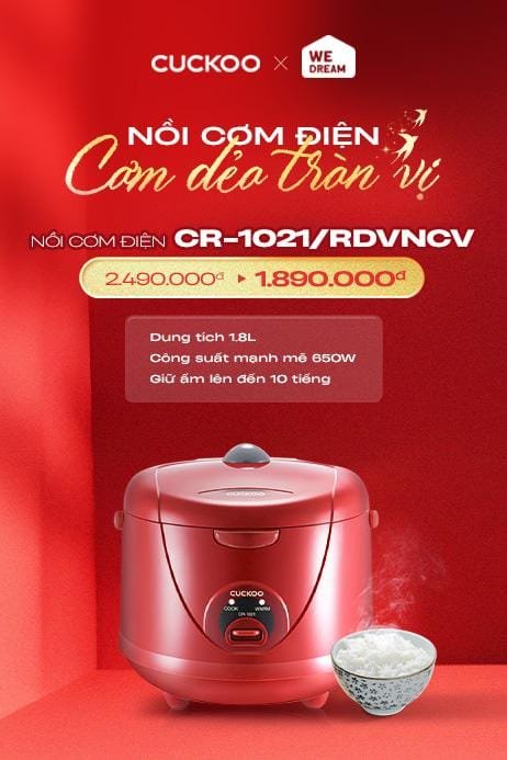 Nồi Cơm Điện Tử Áp Suất Cuckoo 1.8 Lít CRP-PK1000S/P2RDVNCV 1150WNồi Cơm Điện Tử Cuckoo 1.08 Lít CR-0690F/SIWHCRVNCV