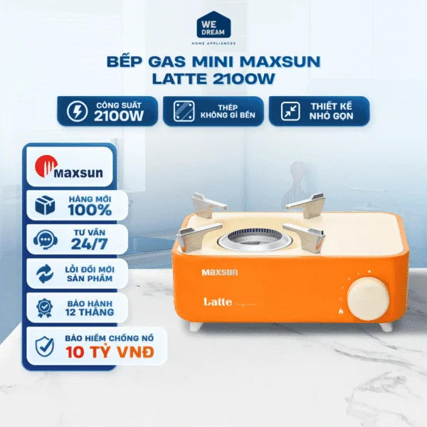 Bếp Gas Mini Maxsun Latte với công suất 2.1 kW (tương đương ~150 g gas/giờ), Maxsun Latte cung cấp đủ nhiệt lượng để đun nước, nấu canh, xào nhẹ hoặc hâm nóng đáp ứng tốt nhu cầu nấu ăn nhanh cho 1–2 người.