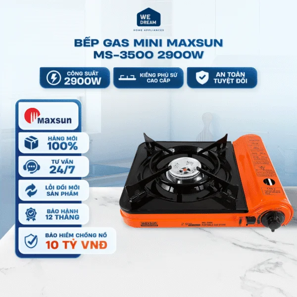 Maxsun MS-3500 công suất 2.9 kW, là lựa chọn hoàn hảo cho axsun MS-520 là lựa chọn lý tưởng cho những ai cần một chiếc bếp nhỏ, nhẹ, dễ mang theo, dễ vệ sinh và an toàn, phù hợp cho căn hộ nhỏ, phòng trọ, sinh viên, gia đình nhỏ hoặc dã ngoại. Với kích thước nhỏ gọn 326 × 277 × 91 mm và trọng lượng chỉ 1.5 kg.