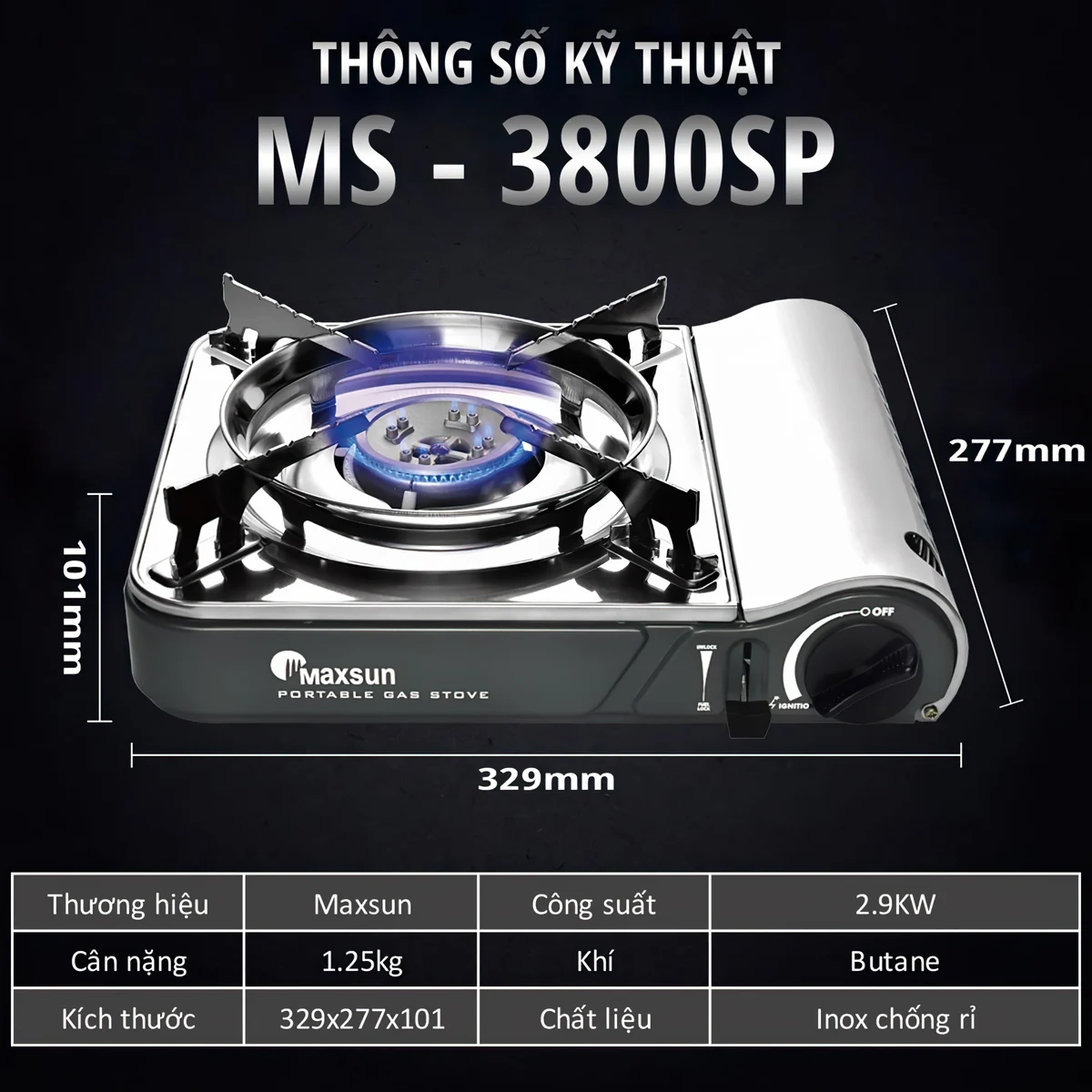 Bếp Gas Mini Maxsun MS-3800SP 2900W Inox Chống Rỉ