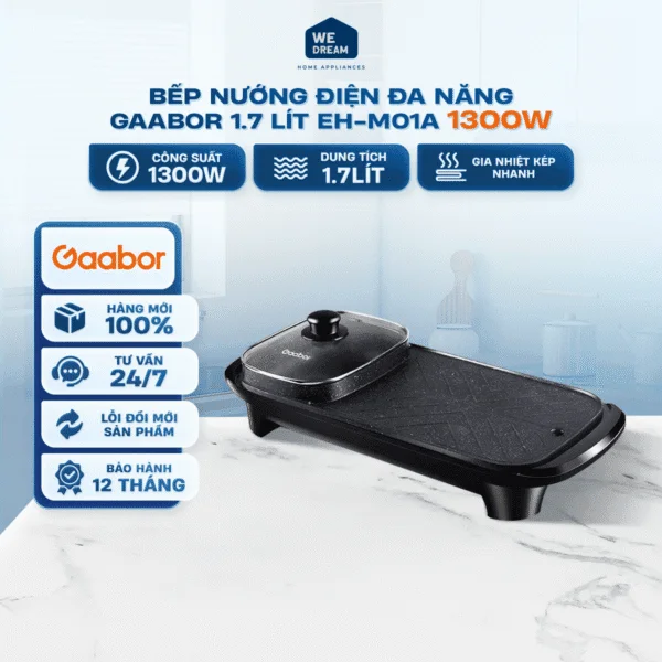 Bếp Nướng Điện Đa Năng Gaabor EH-M01A - Dung Tích 1.7 Lít, Công Suất 1300W