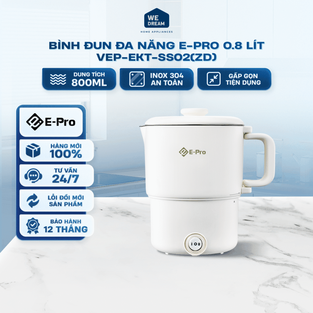Bình đun đa năng E-Pro 0.8 lít VEP-EKT-SS02(ZD)