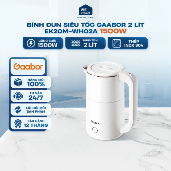 Bình Đun Siêu Tốc Gaabor EK20M-WH02A 2 Lít 1500W