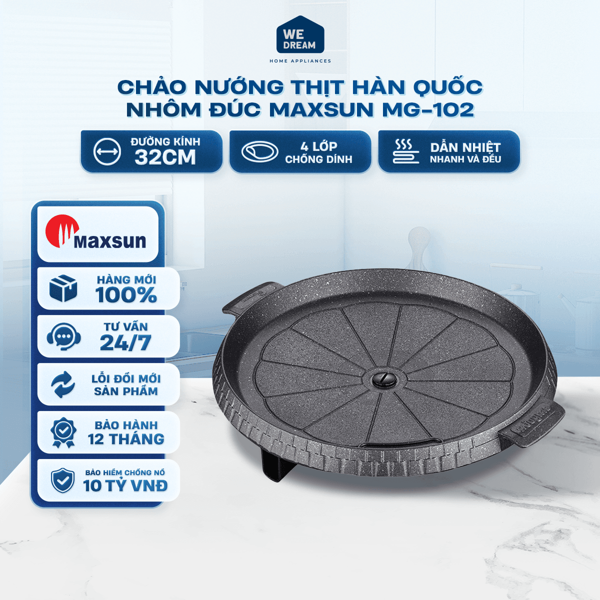 Chảo Nướng Thịt Hàn Quốc Nhôm Đúc Maxsun MG-102