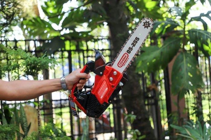 Máy cưa xích cầm tay được thiết kế với trọng lượng máy nhẹ có thể cầm tay dễ dàng để thực hiện các công việc nặng nhọc như cưa gỗ,cắt sắt vô cùng tiện lợi và dễ dàng.