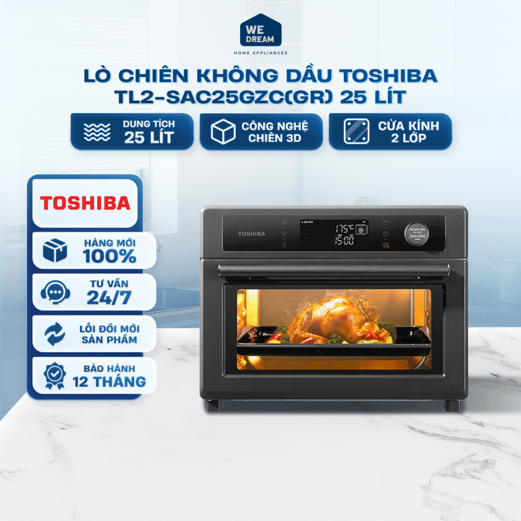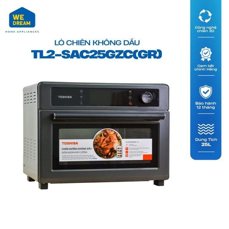 Lò Chiên Không Dầu Toshiba 25 lít TL2-SAC25GZC(GR) Công Nghệ Chiên 3D