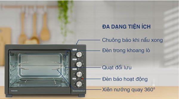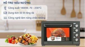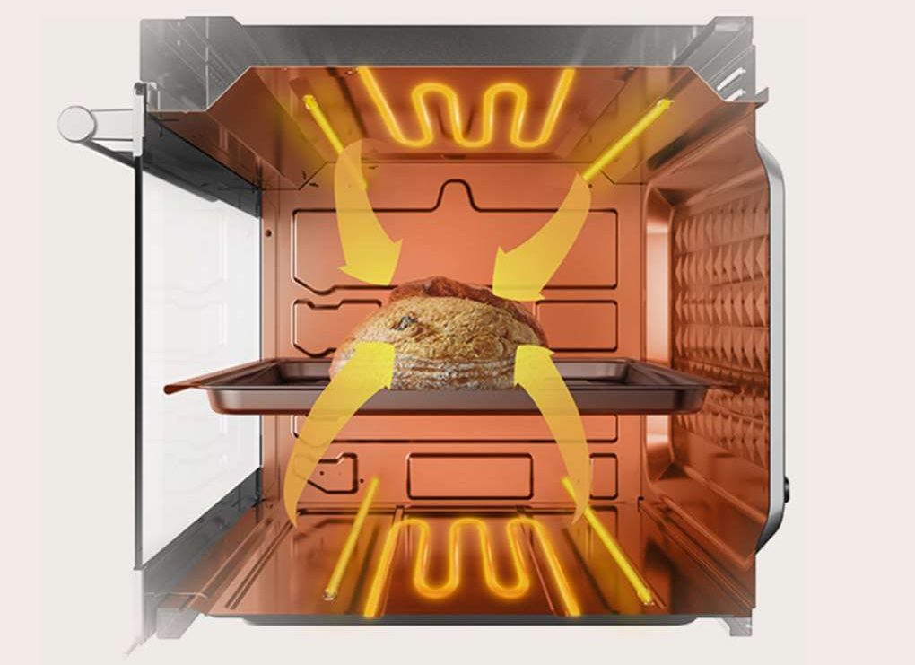 Trang bị 2 thanh dẫn nhiệt trên dưới, có thể điều chỉnh nhiệt độ độc lập để làm chín vàng thức ăn bên ngoài khi đã chín đều bên trong.Ngoài ra còn được trang bị quạt đối lưu đưa khí nóng luân chuyển khắp khoang lò cho thực phẩm chín đều.