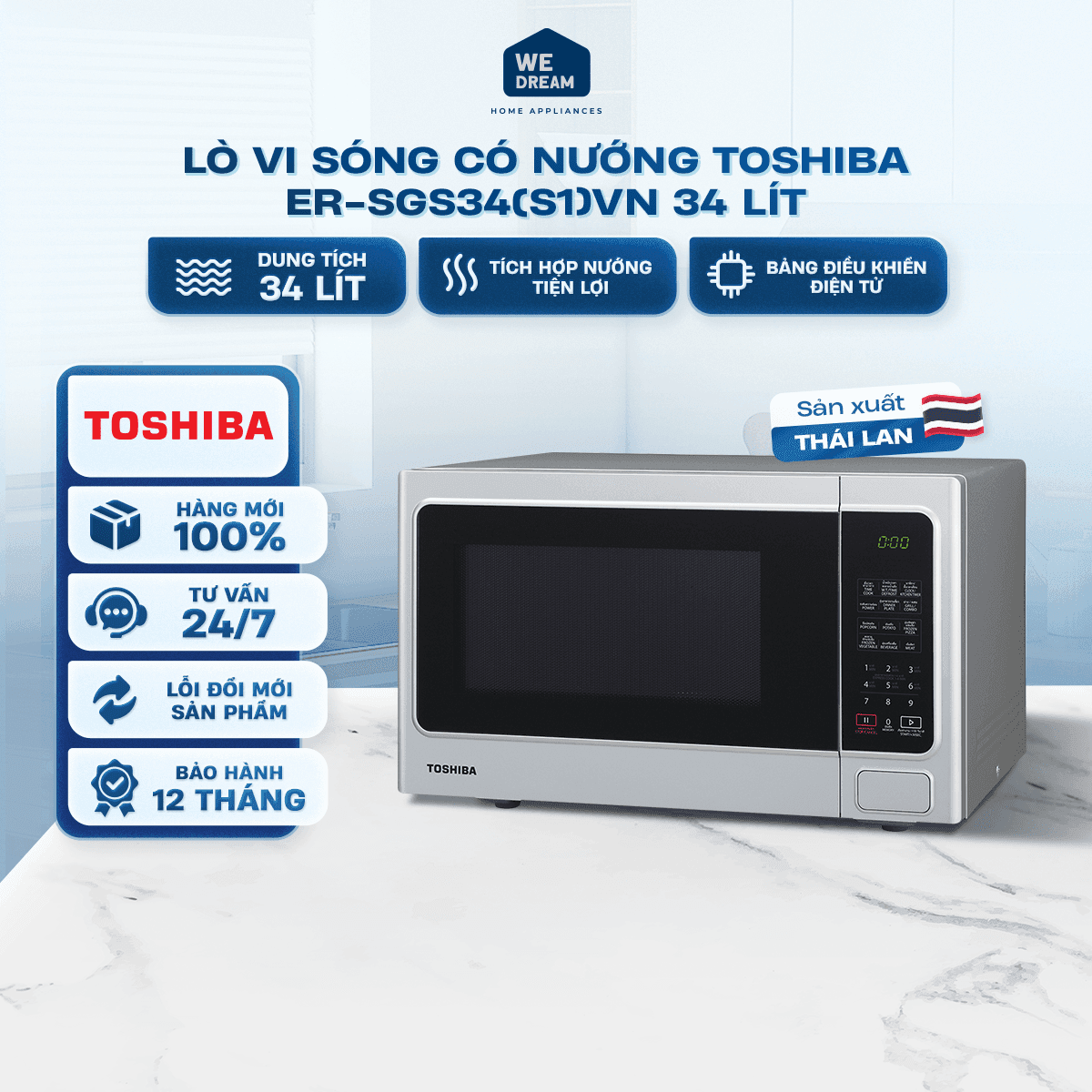 Lò vi sóng Toshiba ER-SGS34(S1)VN 34 lít, thiết bị nấu ăn hiện đại cần thiết cho mọi nhà, giúp công việc nấu nướng nhẹ nhàng, đơn giản hơn bao giờ hết.