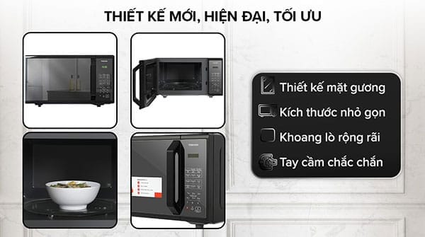 Lò vi sóng được thiết kế với kích thước vô cùng gọn nhẹ nhưng dung tích khoang lò vẫn lớn. Tối ưu diện tích góc bếp giúp trải nghiệm nấu nướng thoải mái hơn nhiều lần.
