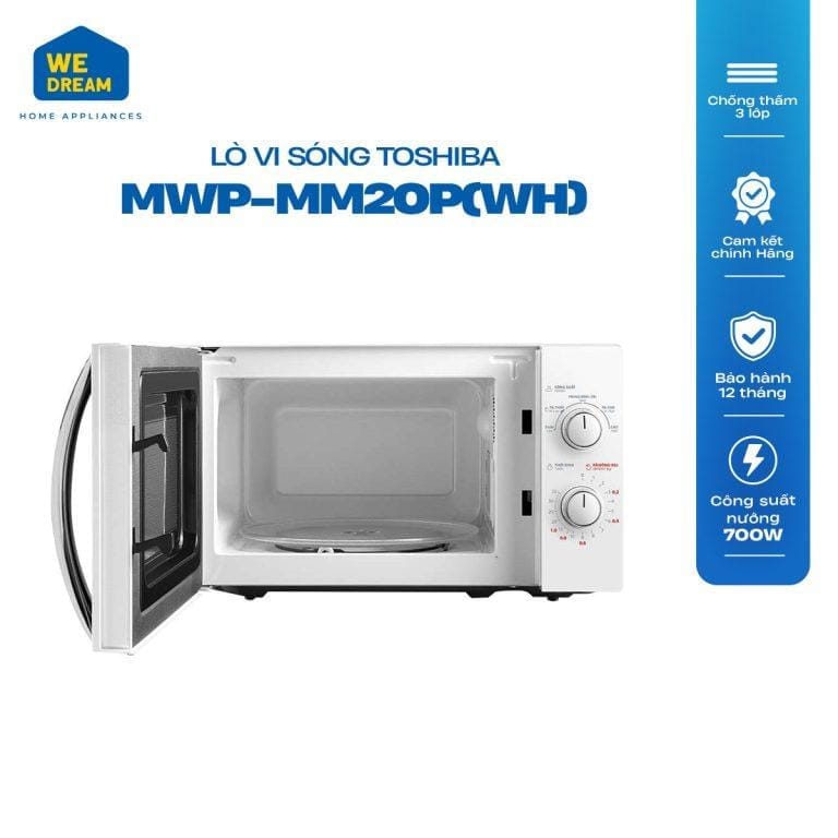Lò vi sóng Toshiba MWP-MM20P(WH) có tay cầm hình vòng cung cổ điển.