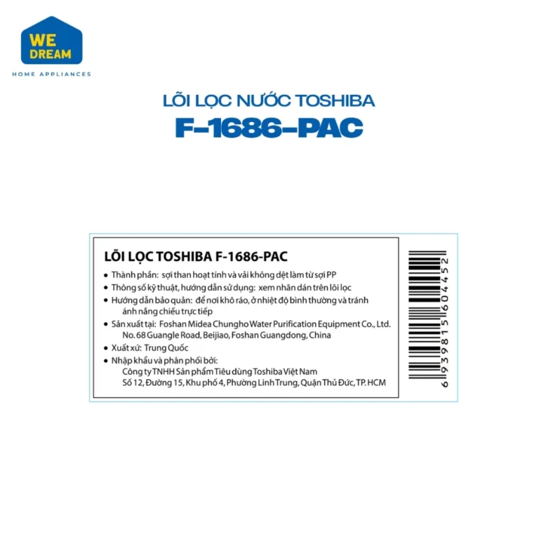 Lõi Lọc Nước Toshiba Số 1 F-1686-PAC – Dùng Cho Máy Toshiba TWP-N1843SV, TWP-N16868UV(W1)