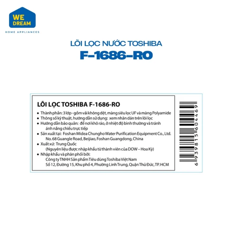 | Tương thích với các máy lọc nước | RO Toshiba TWP-N1686UV(W1) RO Toshiba TWP-N1843SV(T) |