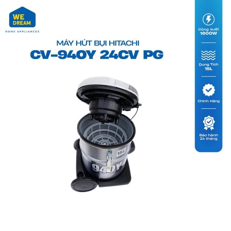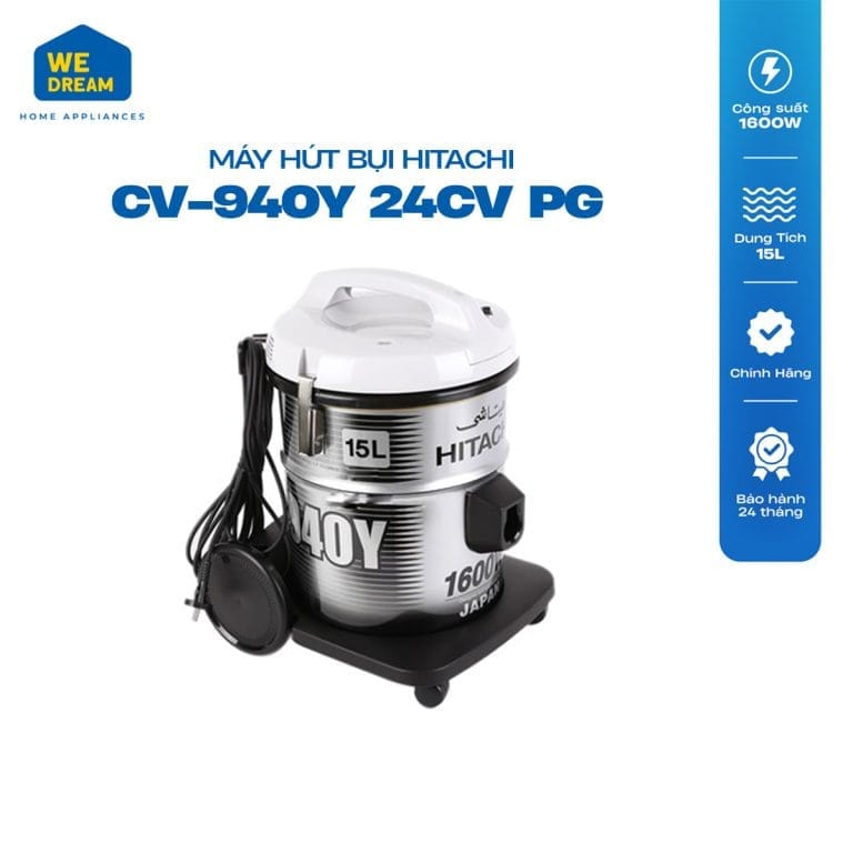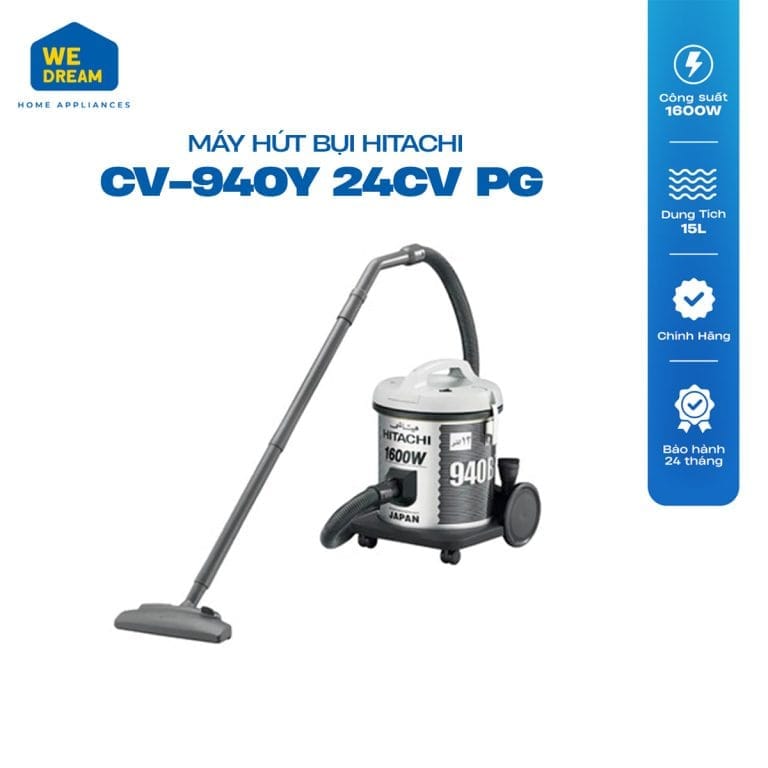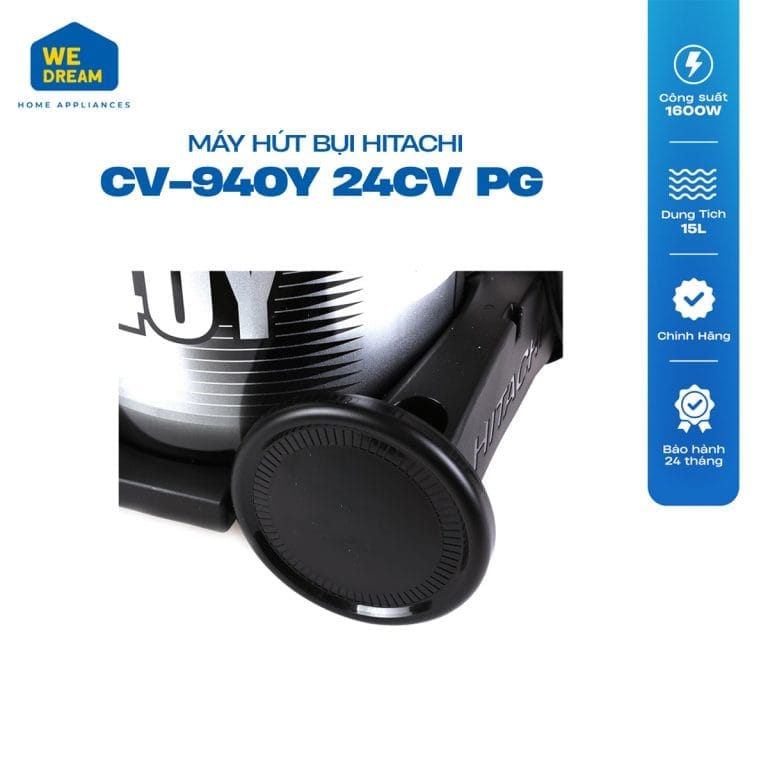 Máy Hút Bụi Hitachi CV-940Y 24CV PG có công suất hút tối đa lên đến 1600 W, cùng với 2 chế độ hút và thổi bụi, bạn sẽ dễ dàng hút sạch được các loại bụi bẩn bám trên mặt sàn hay các bề mặt khác. Phần ống hút có thể thay đổi độ dài cũng giúp việc vệ sinh ở những vị trí khó hút như gầm giường, gầm tủ hay nóc tủ, kệ trở nên dễ dàng hơn. Thiết kế 4 bánh xe còn góp phần giúp bạn dễ dàng di chuyển máy đến những vị trí khác nhau trong quá trình vệ sinh nhà cửa.