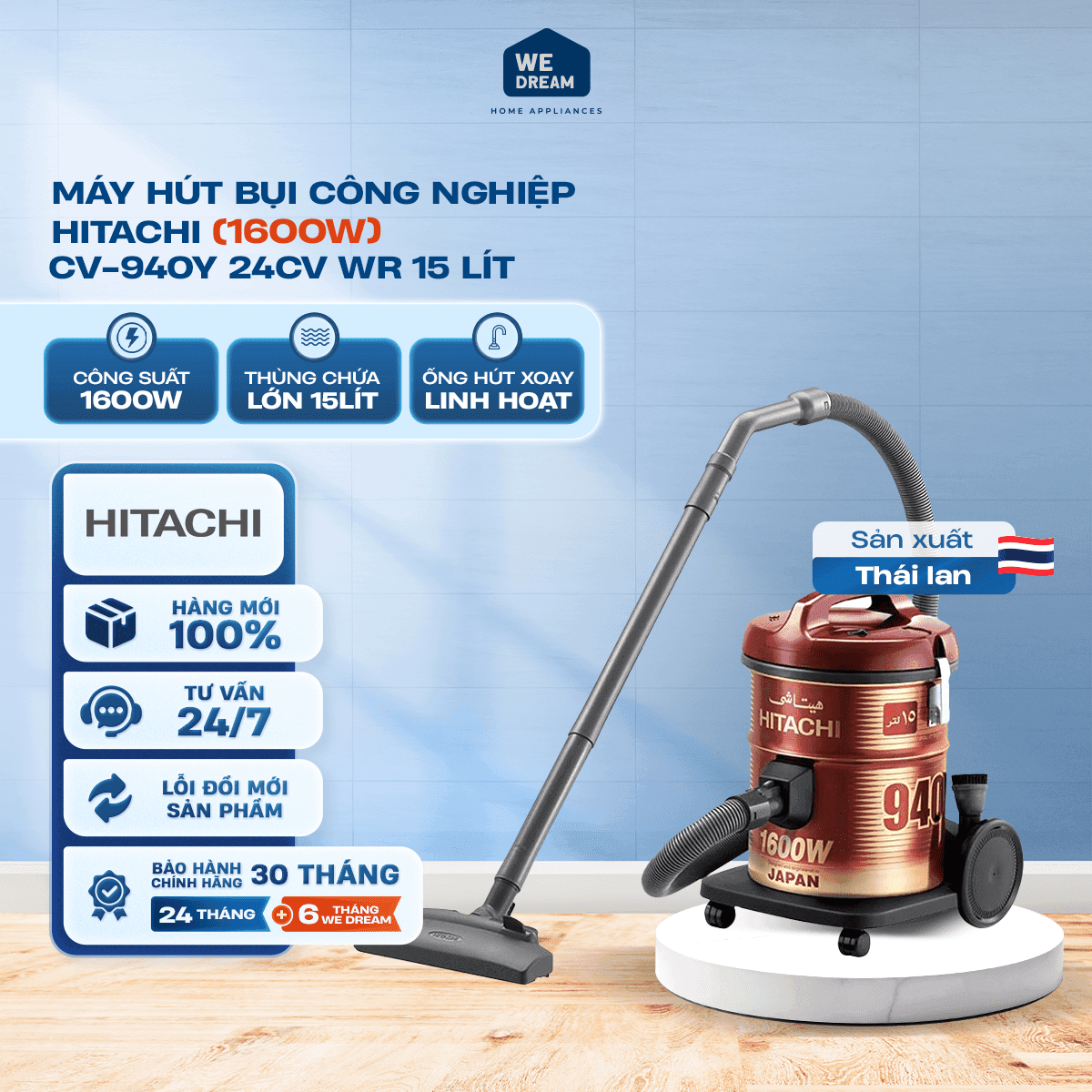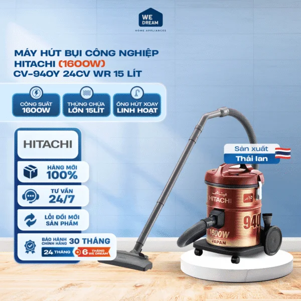 Máy Hút Bụi Công Nghiệp Hitachi 1600W 15 Lít CV-940Y 24CV WR