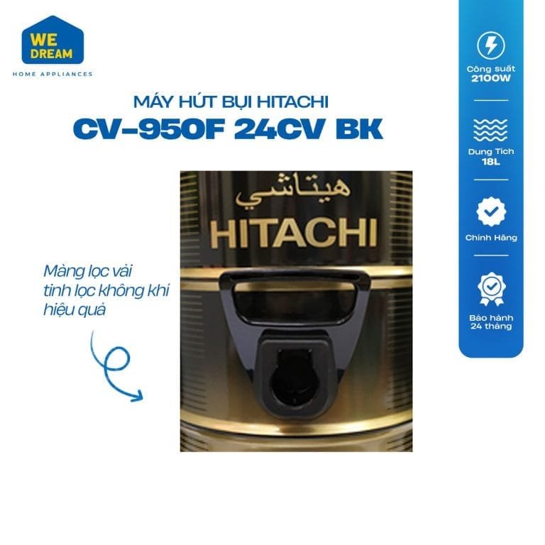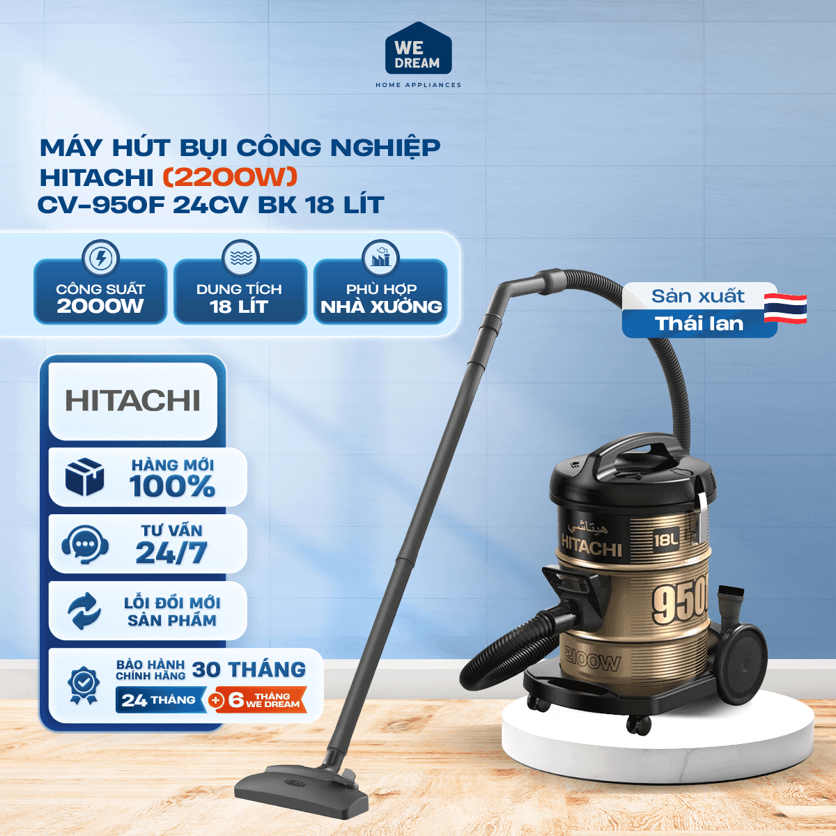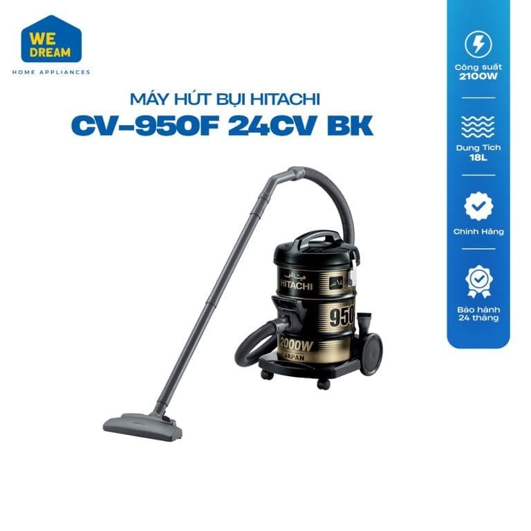 Máy Hút Bụi Công Nghiệp Hitachi 2000W 18 lít CV-950F 24CV BK