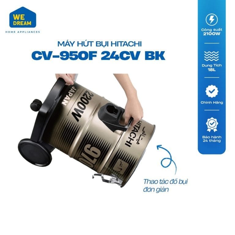 Bên cạnh đó nhờ có thùng chứa bụi có dung tích lớn mà Hitachi CV-950F 24CV BK có thể giúp người dùng giảm thiểu số lần đổ bụi tối đa, từ đó tiết kiệm thời gian và nâng cao hiệu quả của việc dọn dẹp.