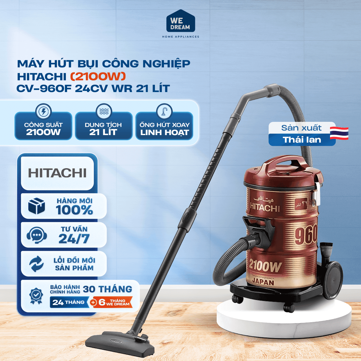 Máy Hút Bụi Công Nghiệp Hitachi 2100W CV-960F 24CV WR 21 Lít