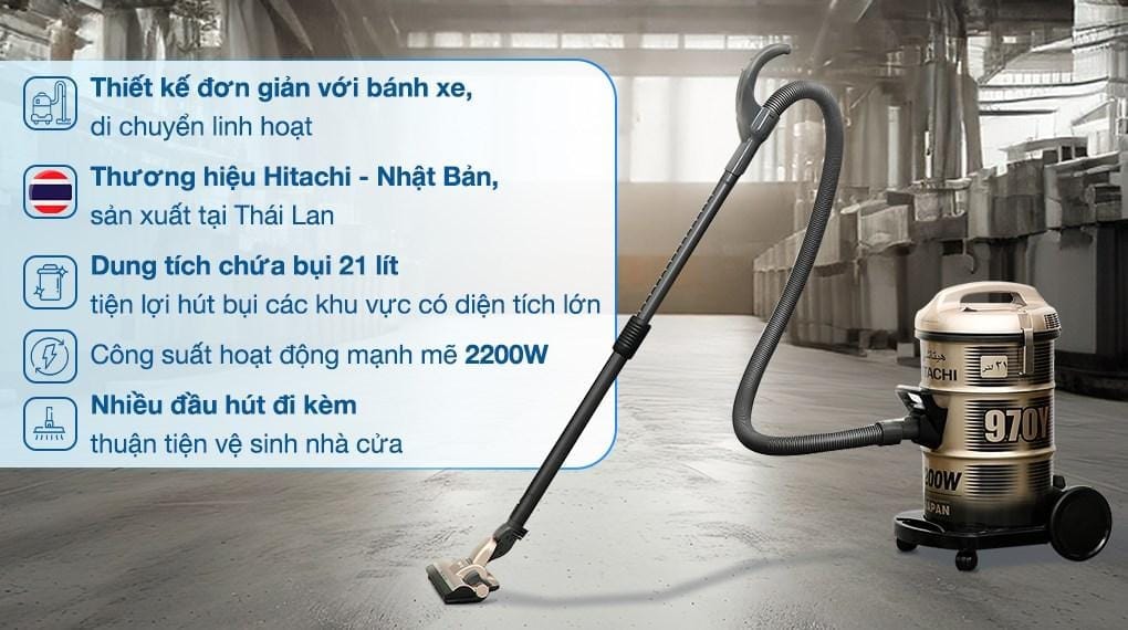 Máy hút bụi Hitachi CV-970Y 24CV TG thuộc thương hiệu Hitachi – Nhật Bản, sản xuất tại Thái Lan đảm bảo độ uy tín về chất lượng.