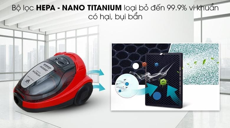 Sở hữu bộ lọc Hepa – Nano Titanium giúp loại bỏ vi khuẩn và bụi bẩn đến 99.9%, khử mùi hiệu quả, mang đến không gian trong lành, sạch sẽ.