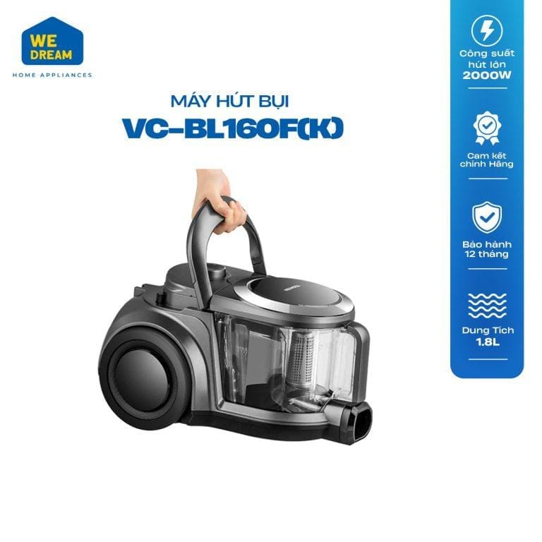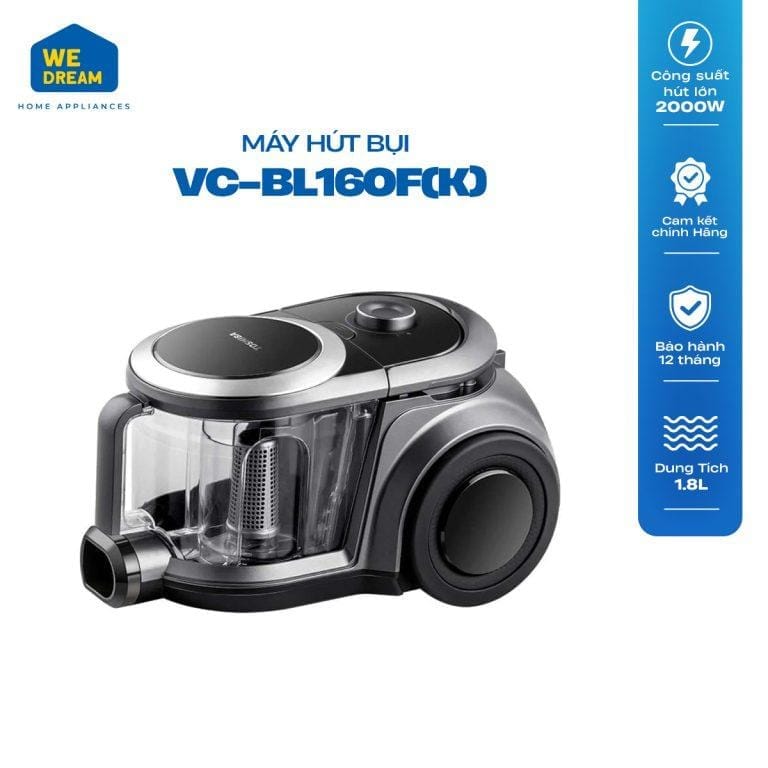 VC-BL160F(K) được trang bị bộ lọc HEPA giúp loại bỏ trên 99% các hạt có hại, gây dị ứng cho cơ thể.