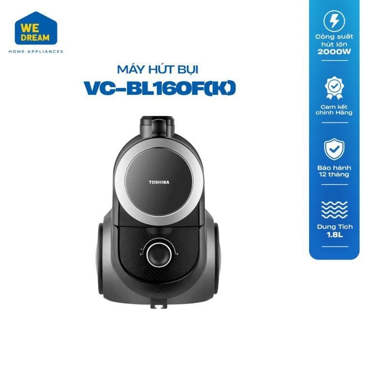 Máy Hút Bụi Toshiba 1.8 Lít Màu Đen VC-BL160F(K) 2000W