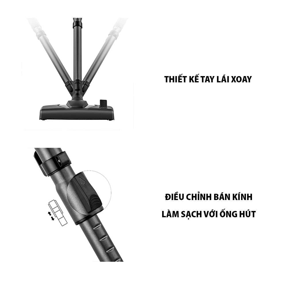 Hơn nữa máy hút bụi còn có bán kính làm sạch rộng, dễ dàng điều chỉnh với ống hút.
