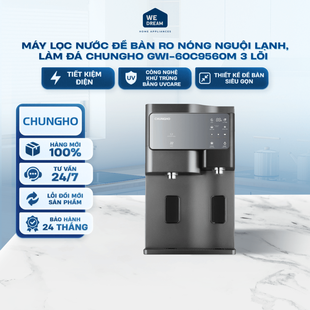 Máy lọc nước để bàn RO nóng nguội lạnh, làm đá ChungHo GWI-60C9560M 3 lõi