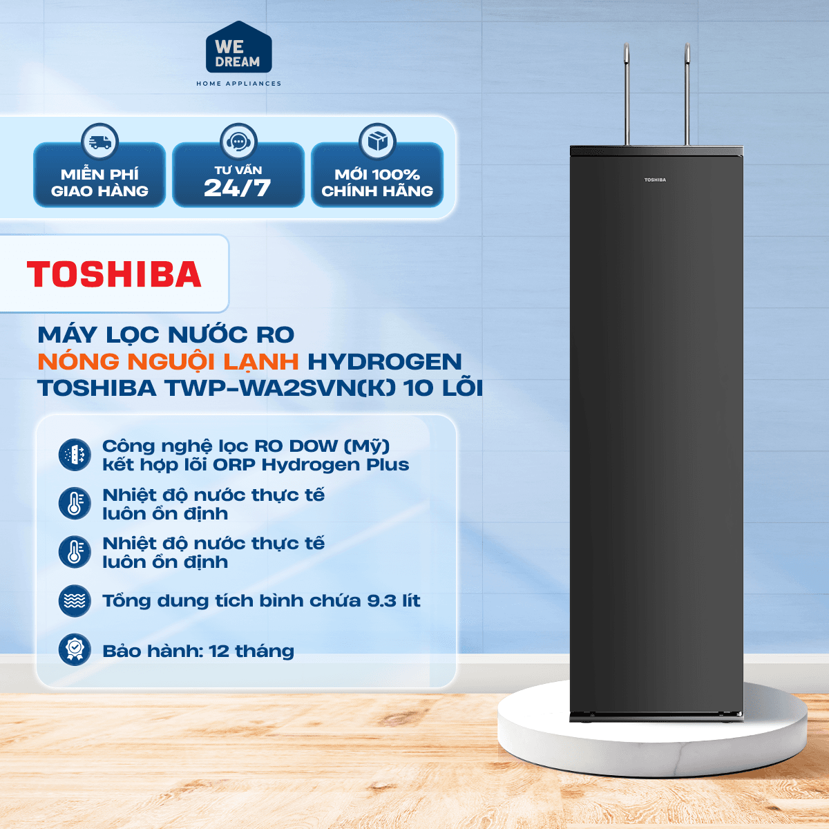 Máy Lọc Nước RO Nóng Nguội Lạnh Hydrogen Toshiba TWP-WA2SVN(K) 10 lõi