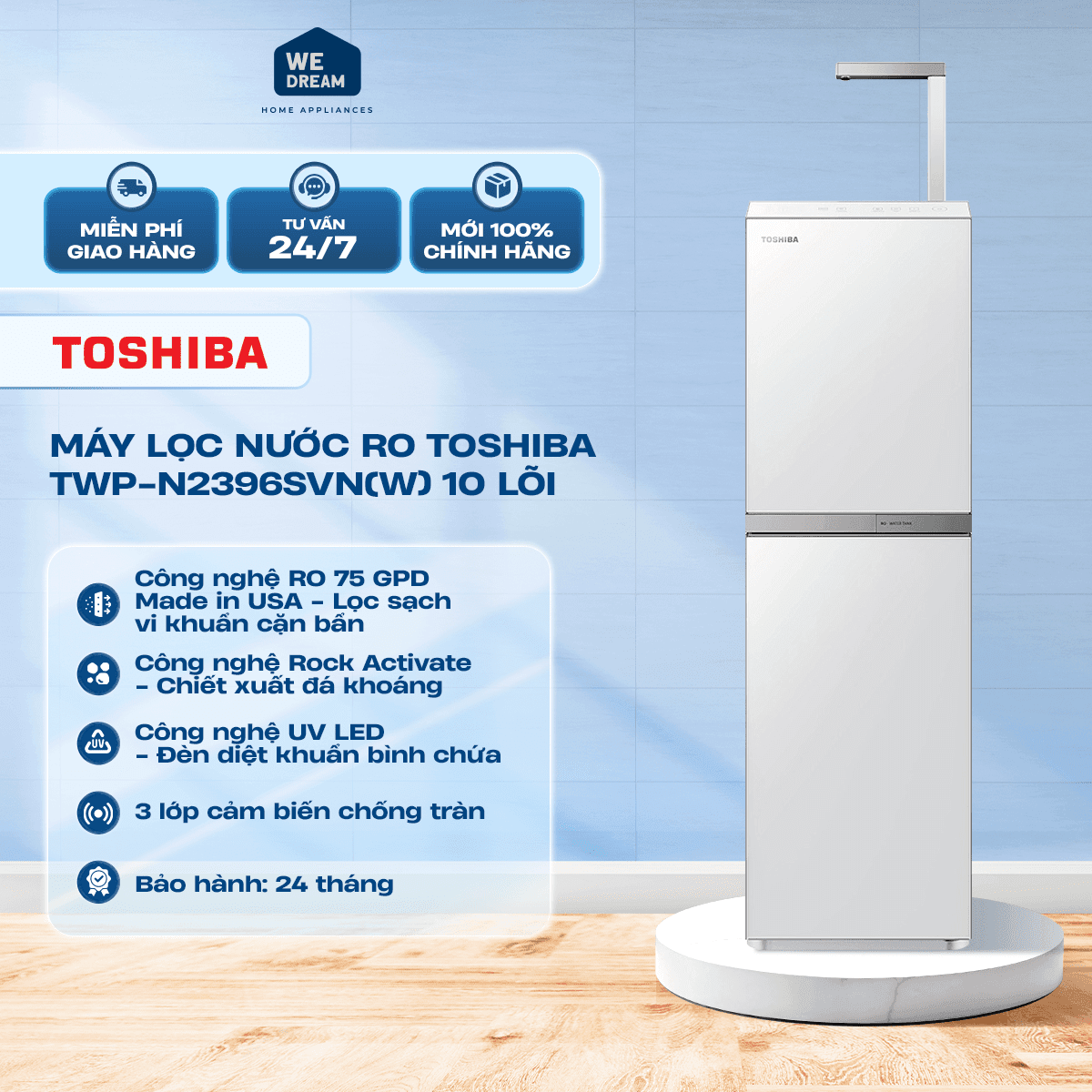 Được trang bị quy trình chuẩn xác từ lọc sạch vi khuẩn đến bảo tồn khoáng chất tự nhiên, máy lọc nước Toshiba không chỉ đem lại nguồn nước tinh khiết mà còn đảm bảo sự an toàn và lành mạnh cho người dùng.