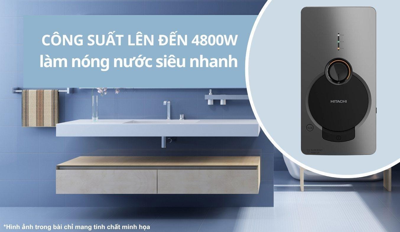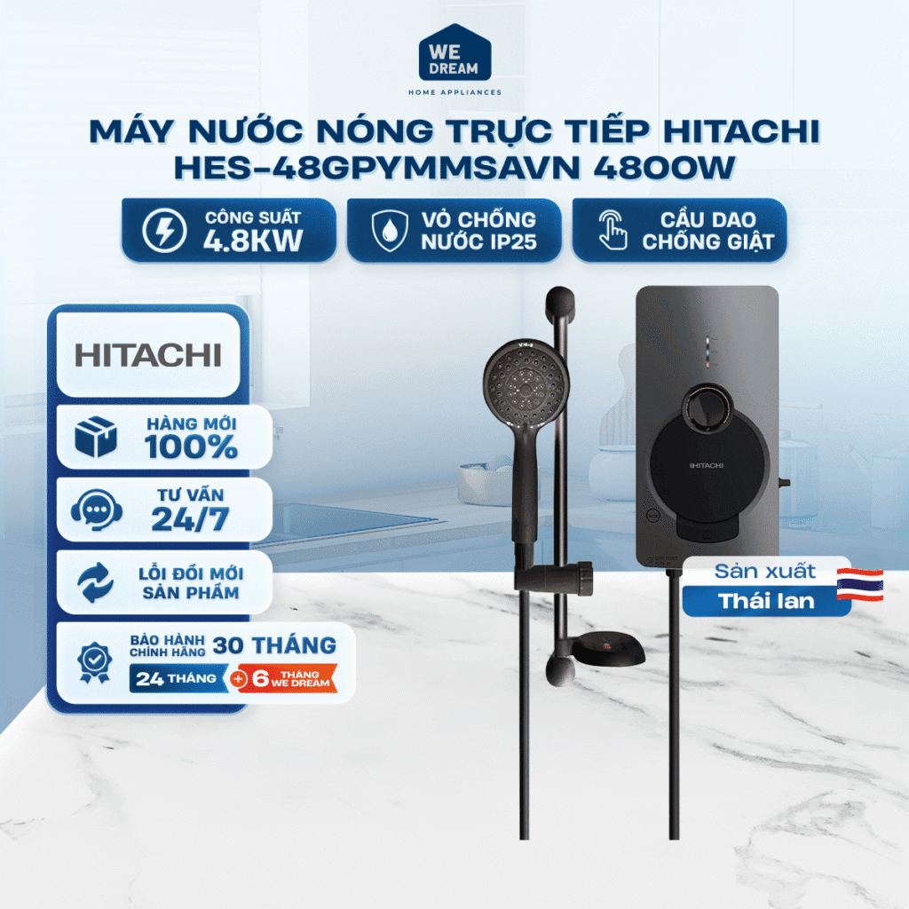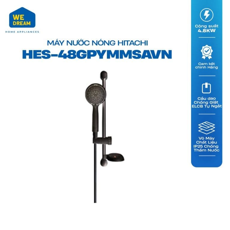 Máy Nước Nóng Trực Tiếp Hitachi HES-48GPYMMSAVN 4800W – Bơm Trợ Lực