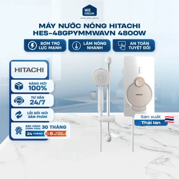 Máy Nước Nóng Trực Tiếp Hitachi HES-48GPYMMWAVN 4800W - Bơm Trợ Lực