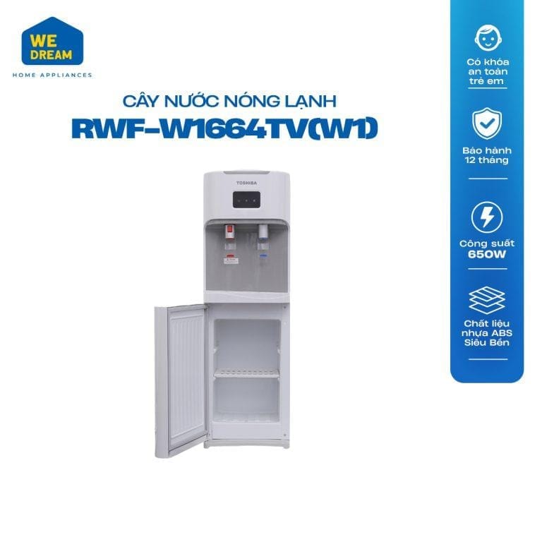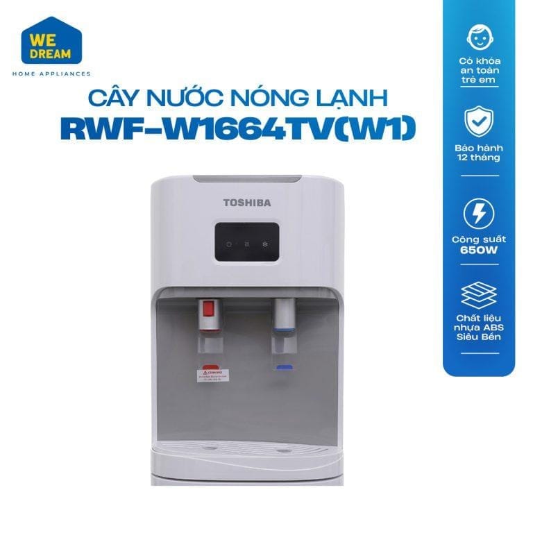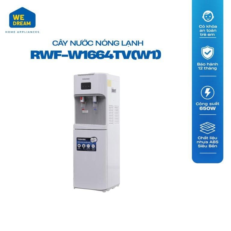 Cây nước nóng lạnh Toshiba giá rẻ RWF-W1664TV (W1) này có tổng công suất lên tới 670W nên hòan toàn có thể đáp ứng được nhu cầu sử dụng cho mọi thành viên trong gia đình bạn.