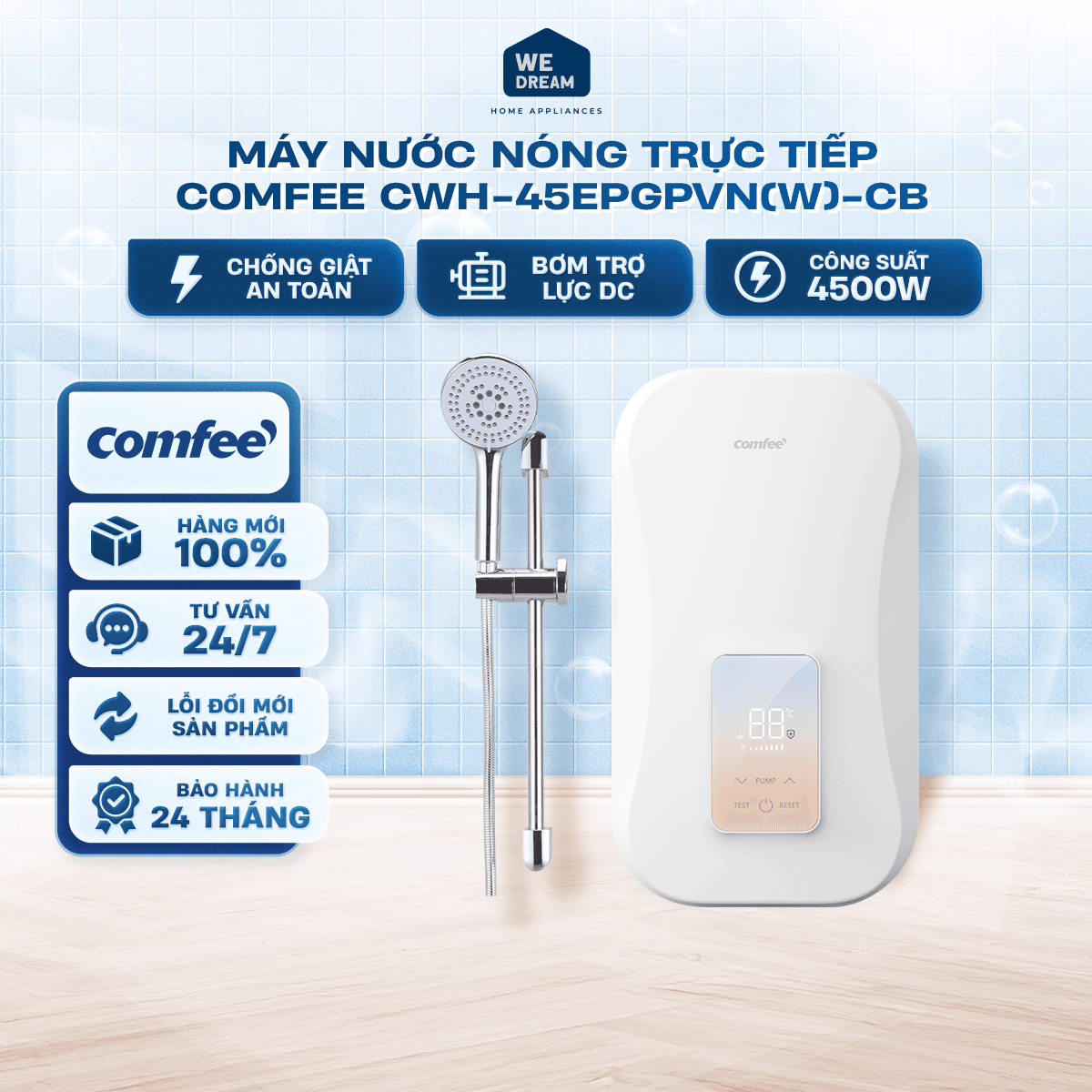 Máy tắm nước nóng Comfee bảo đảm hiệu quả từ những phút đầu tiên, nhanh chóng cung cấp nước nóng, không để bạn phải chờ đợi.