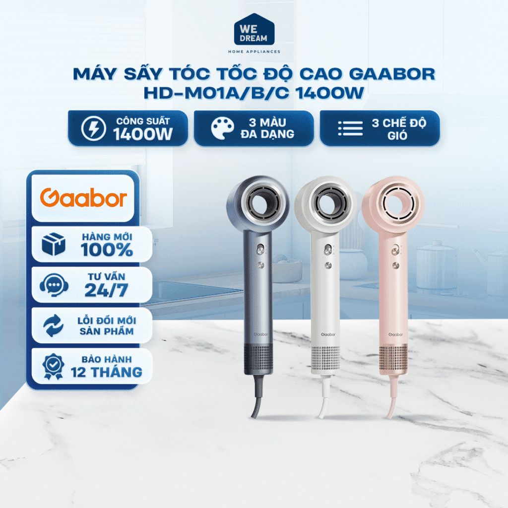 Máy Sấy Tóc Gaabor HD-M01A/B/C 1400W – Màu Xanh, Trắng, Hồng