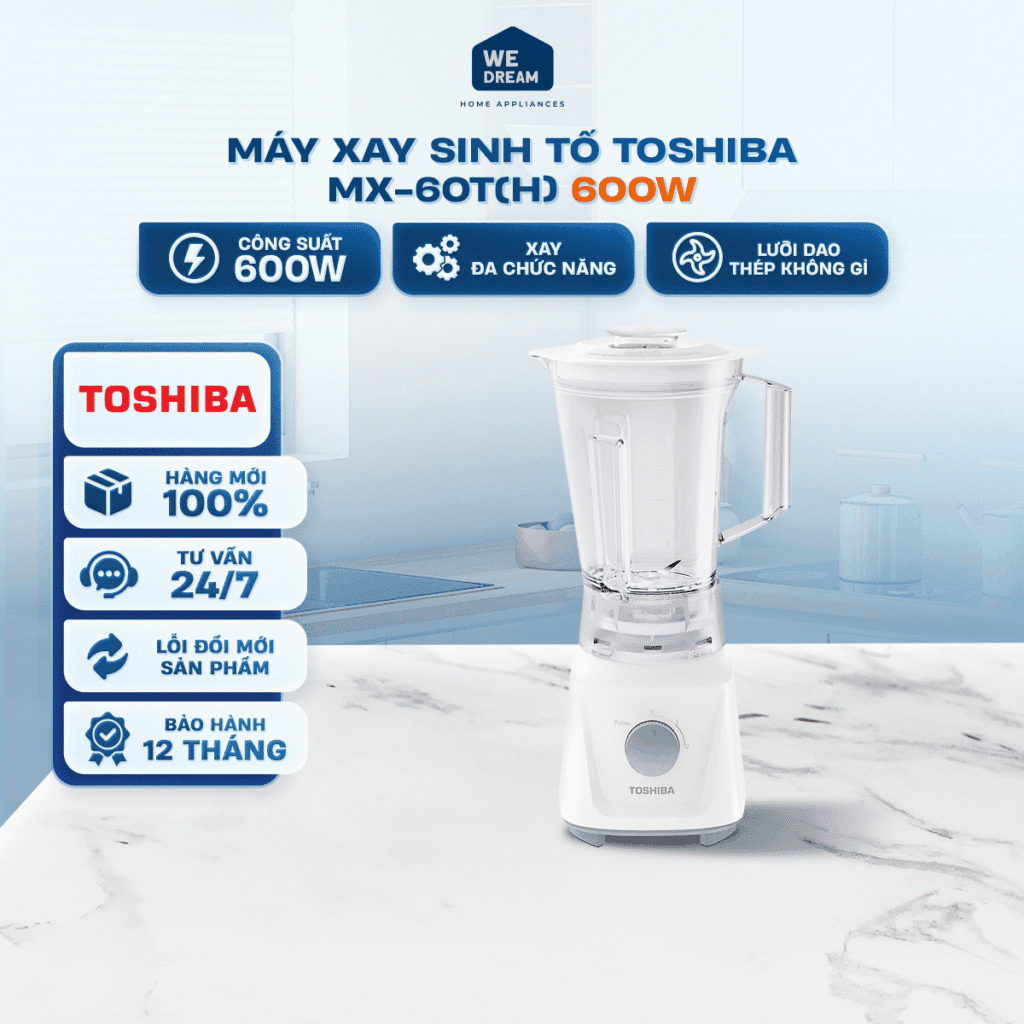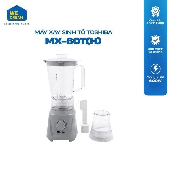 Là một sản phẩm giá rẻ đến từ thương hiệu Toshiba, máy xay sinh tố Toshiba MX-60T(H) có thiết kế đơn giản nhưng vẫn rất trang nhã, hội tụ đầy đủ các tính năng và công suất phù hợp để giúp bạn xay, nghiền, trộn thực phẩm, làm phong phú hơn thực đơn cho gia đình mình.