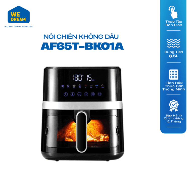 – Với dung tích 6.5 lít, nồi chiên này đủ lớn để nấu chín một lượng lớn thực phẩm một lần, tiết kiệm thời gian và công sức của bạn