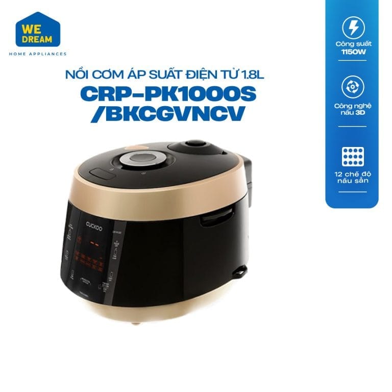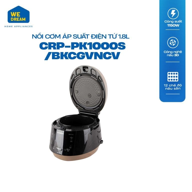 Nồi cơm áp suất điện tử Cuckoo 1.8 lít CRP-PK1000S/BKCGVNCV là sản phẩm thích hợp cho gia đình từ 4 – 6 người, cần một nồi cơm điện đa năng hoặc phù hợp với những người nhu cầu giảm cân do nấu được các loại gạo đặc thù như gạo lứt, gạo nảy mầm mà không cần ngâm trước.