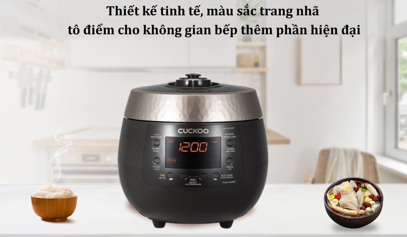 Nồi cơm điện tử áp suất Cuckoo 1.8 lít CRP-R1000F/BKGBCRVNCV có thiết kế sang trọng cùng gam màu trang nhã tô điểm cho không gian bếp thêm phần hiện đại. Dung tích 1.8 lít phù hợp với gia đình khoảng 4 – 6 người. Bên cạnh đó, nồi còn giữ được hương vị thơm ngon của cơm nhờ hệ thống thoát nước với khay chứa lớn giúp vệ sinh sạch sẽ nước cơm thừa còn đọng lại bên trong nồi khi nấu cơm.