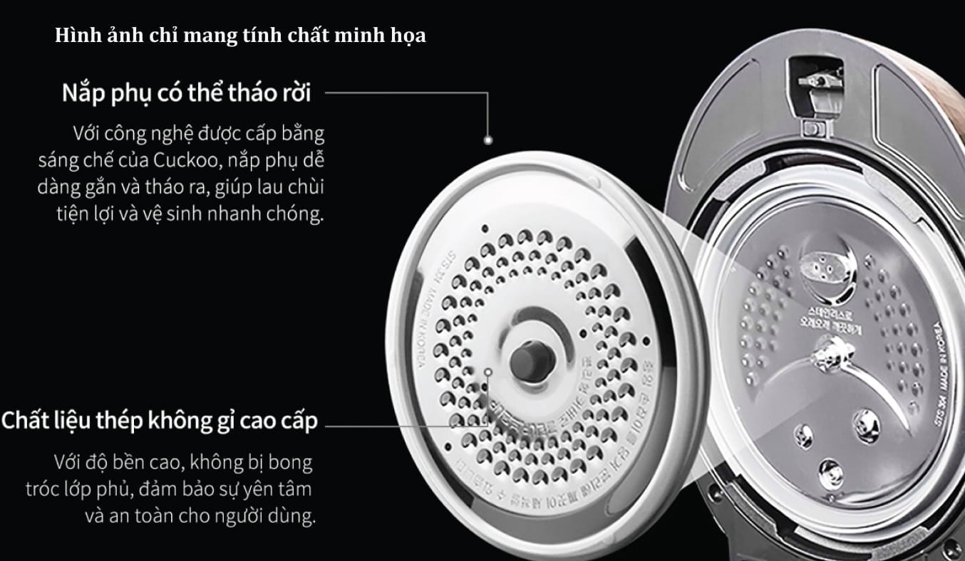 | Lòng nồi | Phủ men Xwall Black độc quyền Cuckoo chịu được nhiệt độ và áp suất cao |