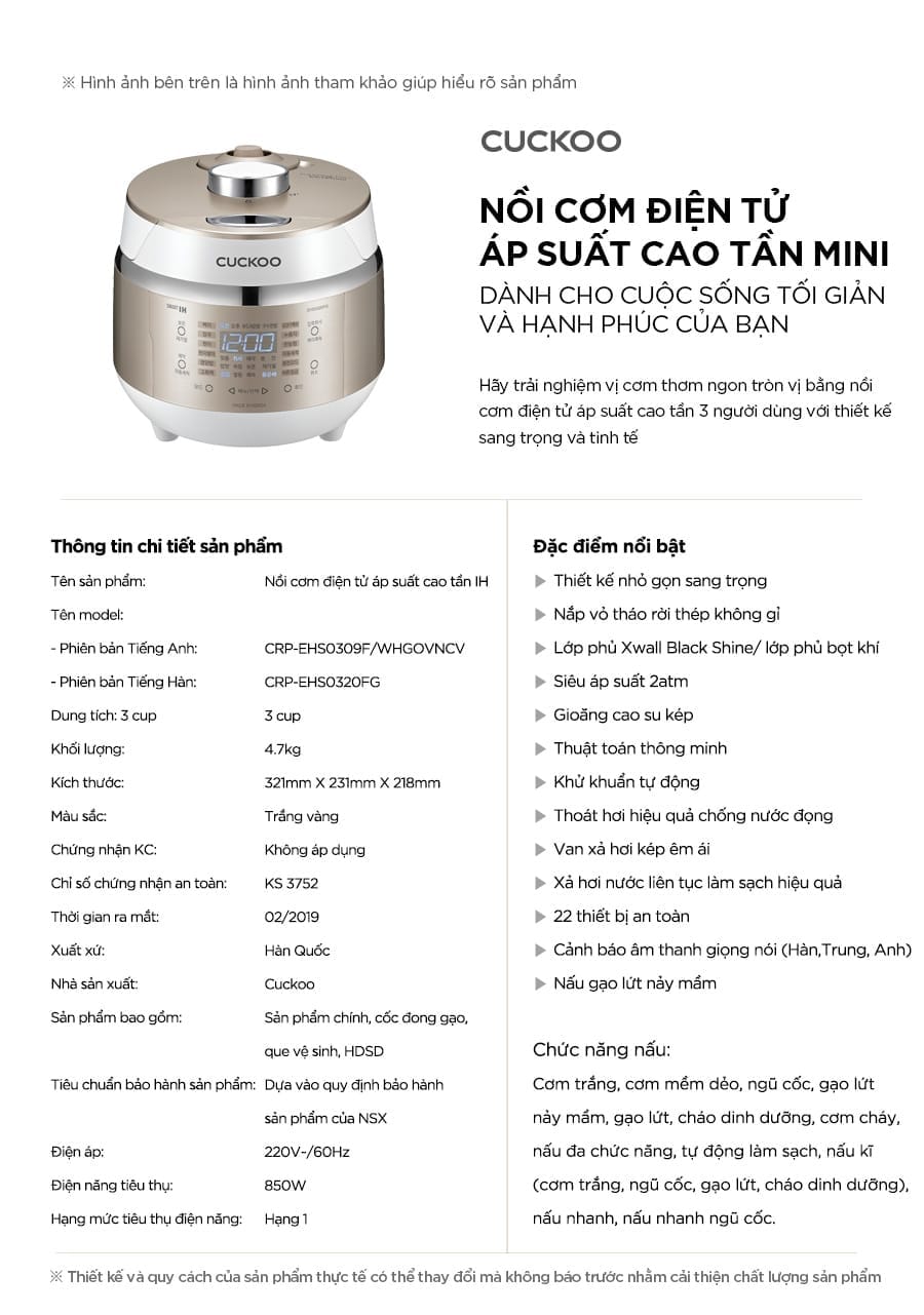 Nồi Cơm Áp Suất Điện Tử Cao Tần 0.5 lít CRP-EHS0309F/WHGOVNCV