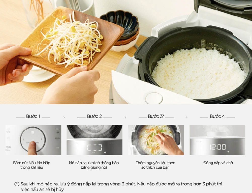 Đặc biệt, khi chế biến món ăn với chế độ không áp suất người dùng có thể mở nắp nồi để thêm nguyên liệu mà không lo thất thoát nhiệt.