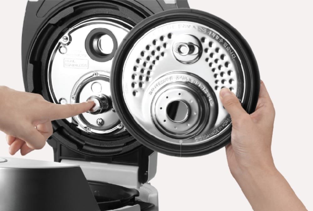 Công nghệ xả hơi nước liên tục giúp xử lý triệt để vi khuẩn và mùi hôi trong quá trình nấu, đồng thời loại bỏ tất cả hơi nước còn dư lại. Van xả áp suất kép độc đáo cấu trúc hình chữ S với kết cấu vách ngăn liên tiếp giúp xả hơi nước một cách êm ái, giảm tiếng ồn và nhiệt độ, đảm bảo an toàn.