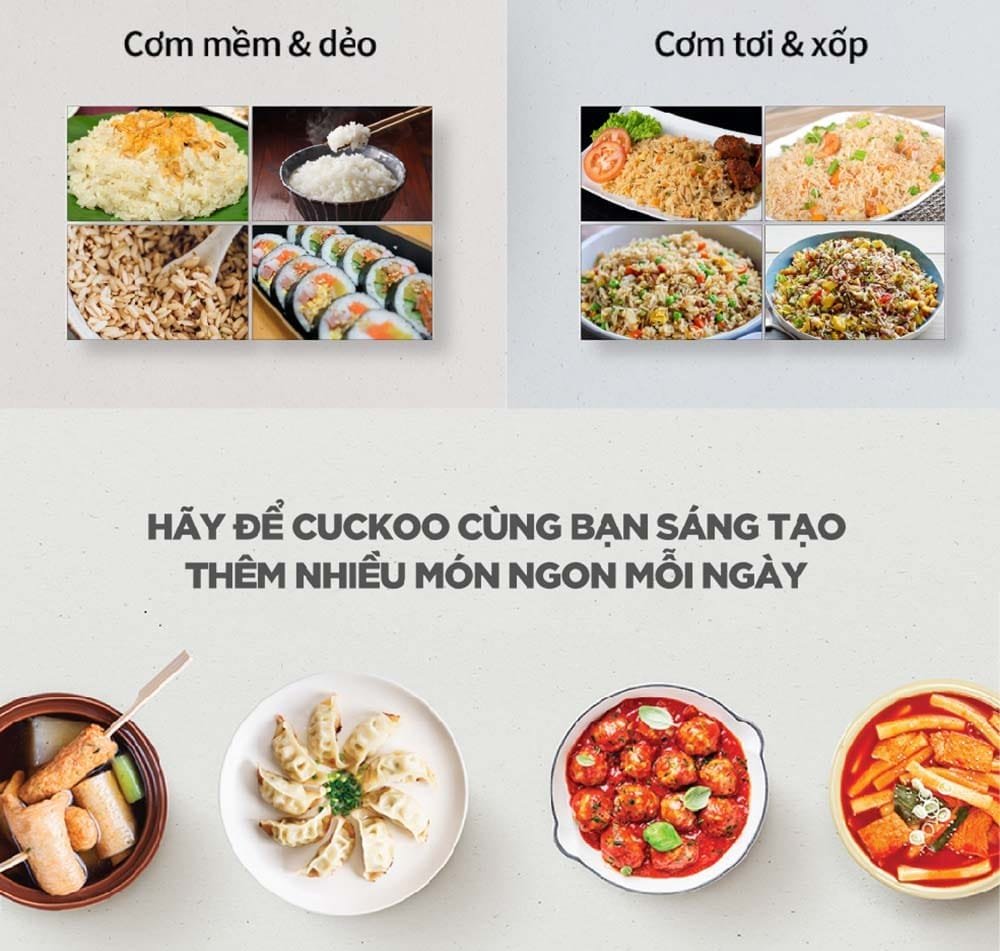 Nấu không áp suất (Gồm 7 chế độ nấu): Công nghệ cao tần IH giúp nấu cơm và thực phẩm chín đều, tơi, xốp, đảm bảo giữ nguyên hương vị, giá trị dinh dưỡng vốn có trong thực phẩm. Chế độ nấu thường thích hợp sử dụng để chế biến thức ăn trẻ em, nấu canh, súp, cháo dinh dưỡng…
