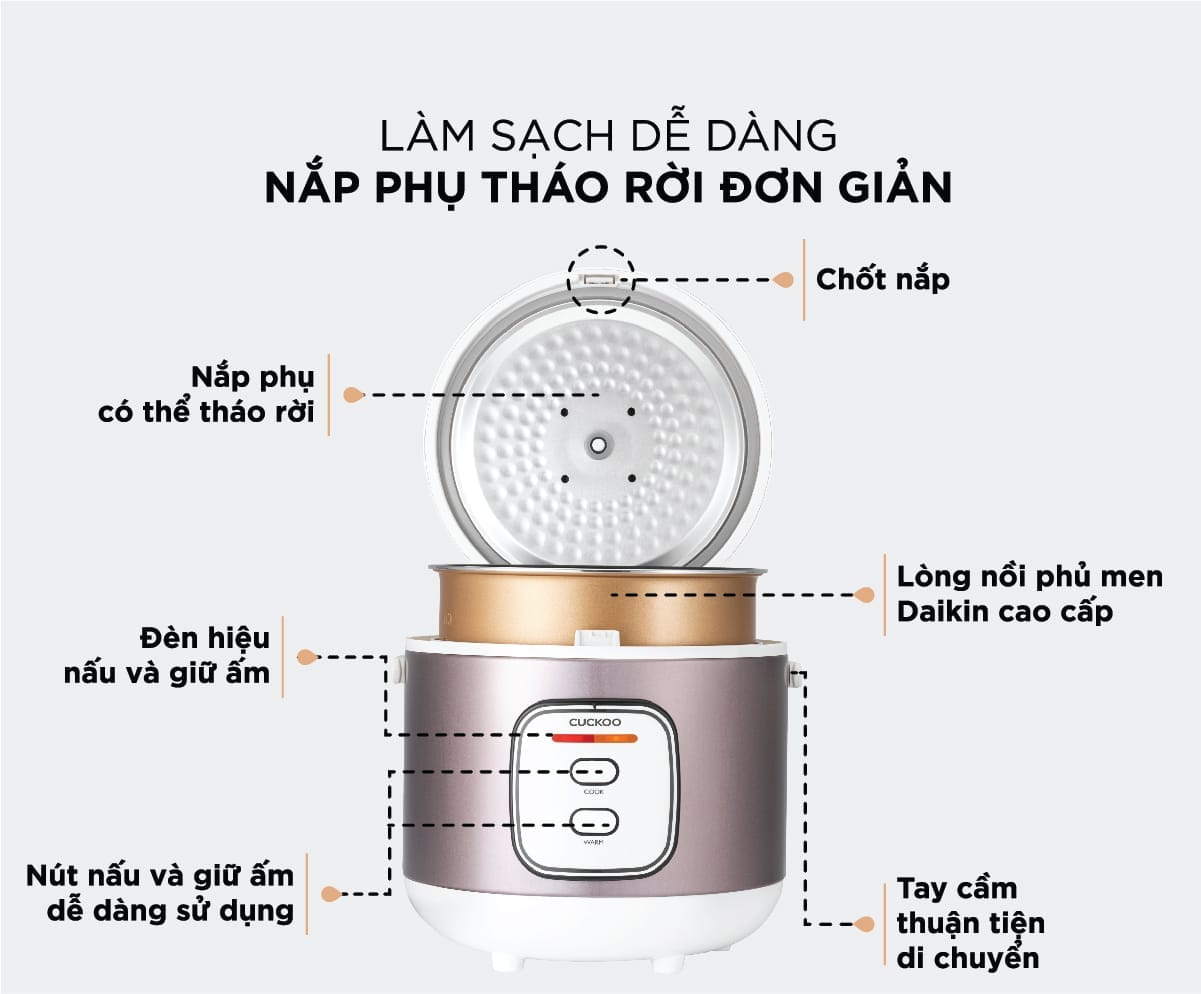 • Nắp phụ tháo rời giúp vệ sinh nồi dễ dàng hơn