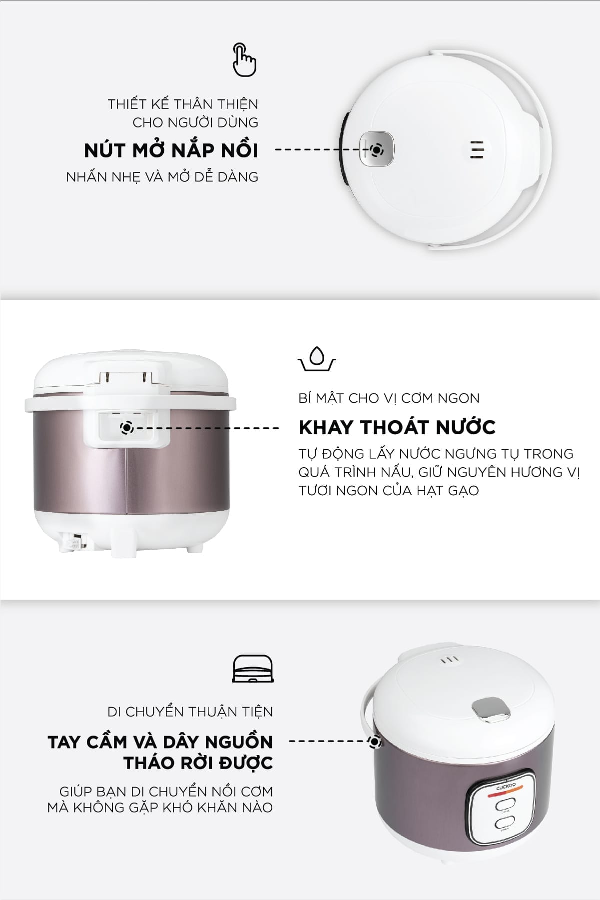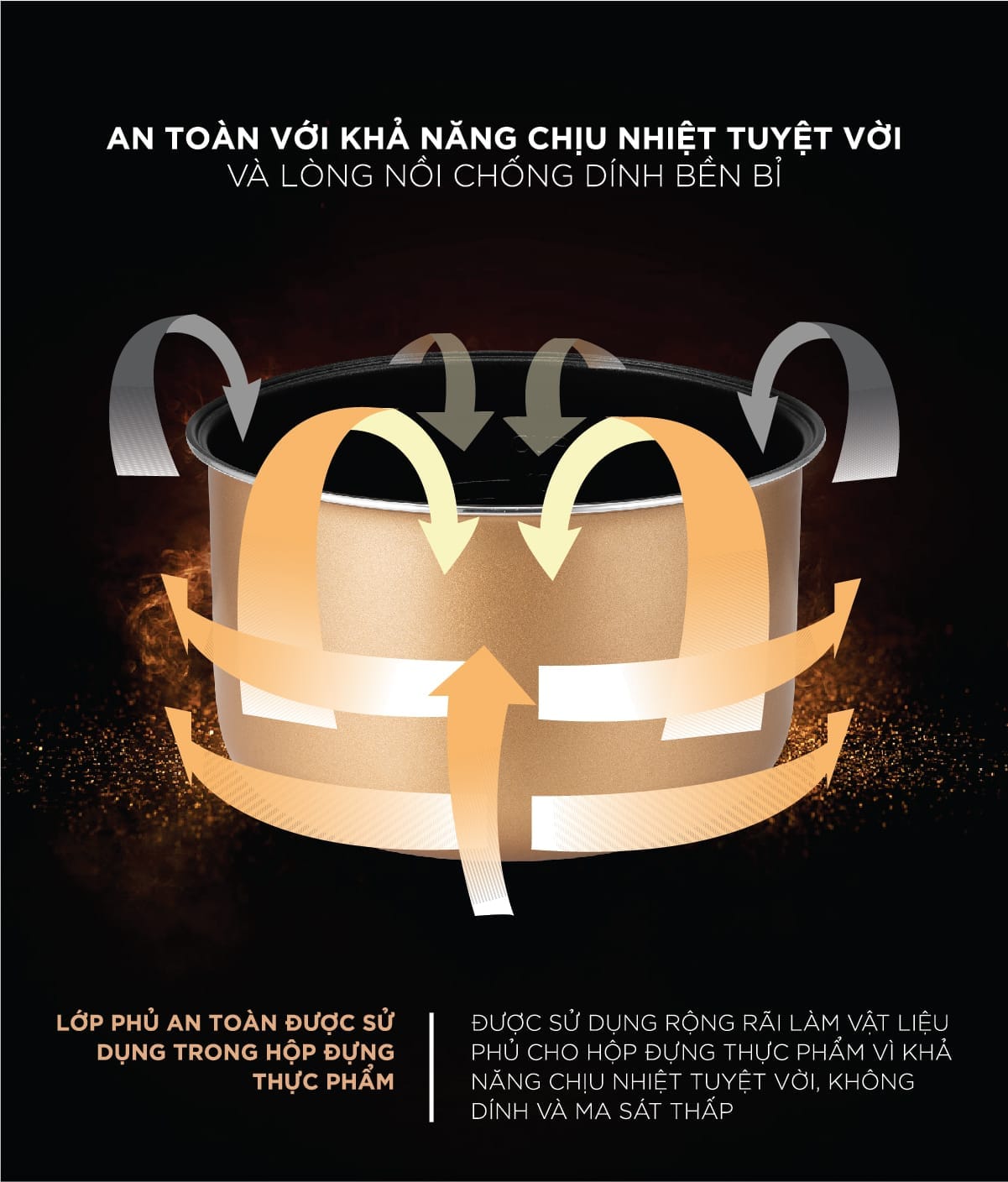 • Nấu cơm nhanh hơn và giữ ấm tốt hơn với công nghệ gia nhiệt 3D.