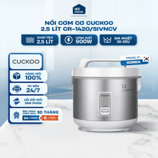 Nồi cơm điện cơ Cuckoo 2.5L CR-1420/SIVNCV công nghệ nấu nhiệt 3D.