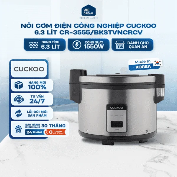 Nồi cơm điện công nghiệp Cuckoo CR-3555/BKSTVNCRCV là lựa chọn tối ưu cho nhu cầu nấu ăn quy mô lớn. Sản phẩm kết hợp giữa hiệu suất mạnh mẽ, độ bền cao và thiết kế tinh tế. Mang đến trải nghiệm nấu ăn chuyên nghiệp, tiết kiệm và an toàn.