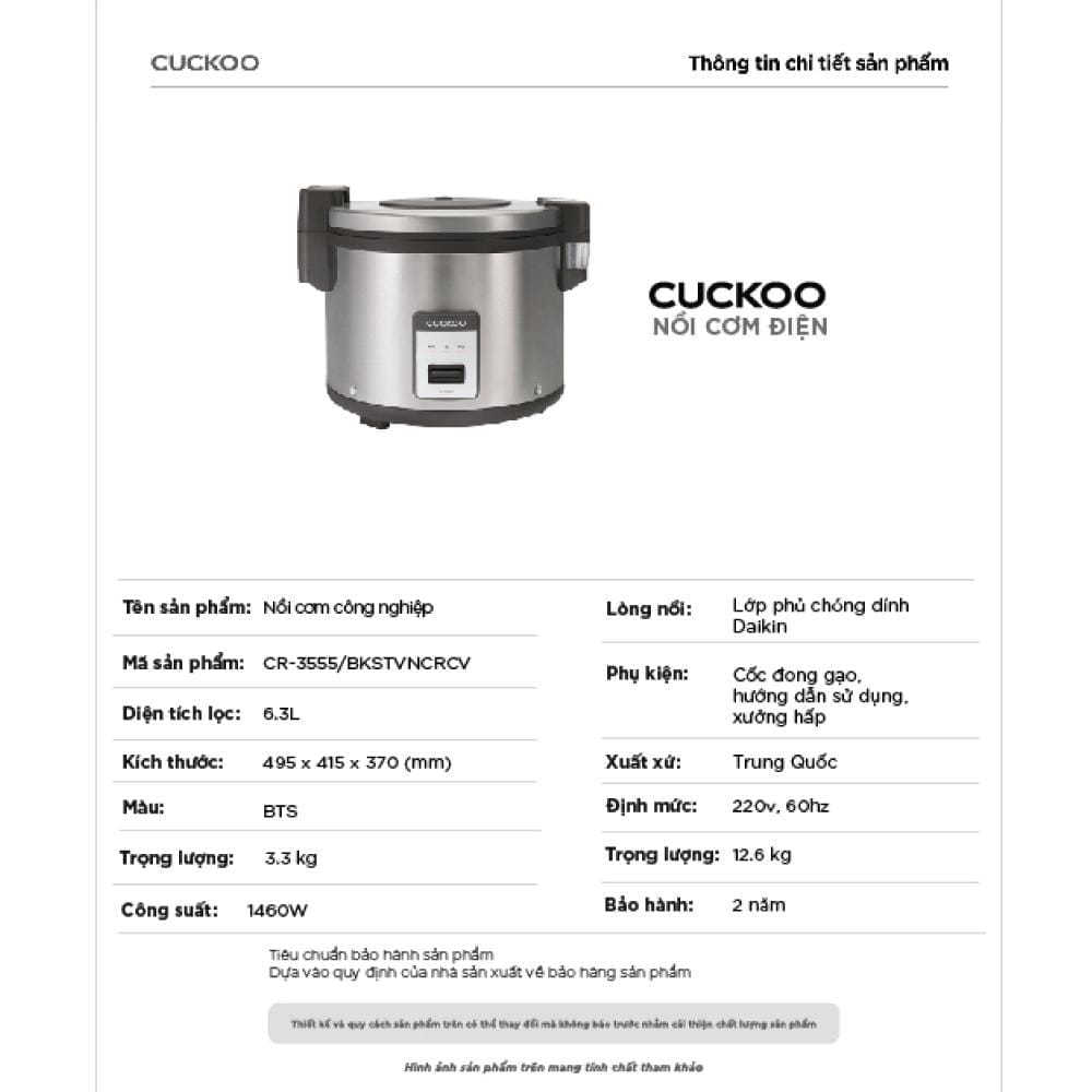 Nồi Cơm Điện Công Nghiệp Cuckoo 6.3 Lít CR-3555/BKSTVNCRCV