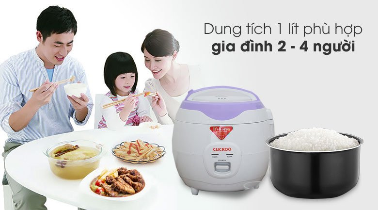 Là sự lựa chọn hoàn hảo cho các gia đình nhỏ hoặc những người sống một mình, đáp ứng nhu cầu nấu ăn hằng ngày với dung tích 1.0 lít. Sản phẩm này không chỉ giúp nấu cơm nhanh chóng mà còn đảm bảo chất lượng cơm thơm ngon, tơi xốp.