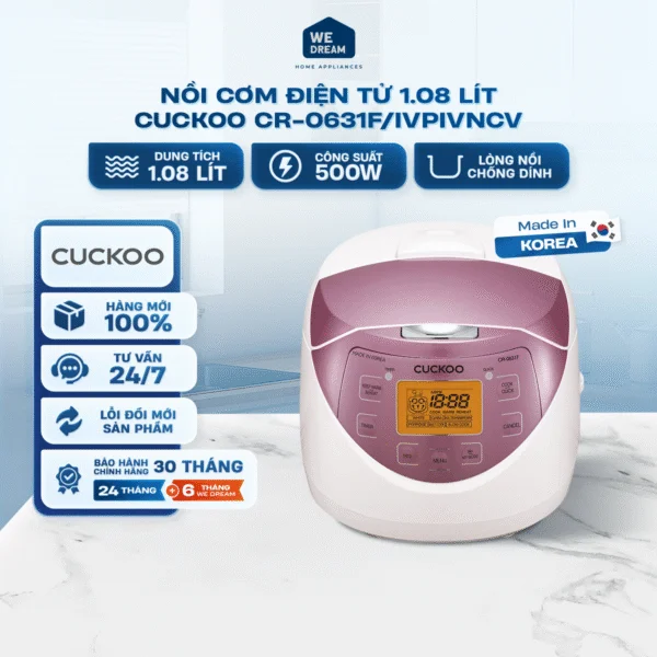 Nồi Cơm Cuckoo 1 Lít CR-0631F/IVPIVNCV là lựa chọn lý tưởng cho người độc thân, cặp đôi, gia đình nhỏ hoặc dùng trong môi trường phòng trọ, văn phòng. Với dung tích gọn nhẹ, dễ sử dụng và hiệu quả nấu ổn định, nồi mang đến những bữa cơm thơm ngon, tiện lợi mỗi ngày.